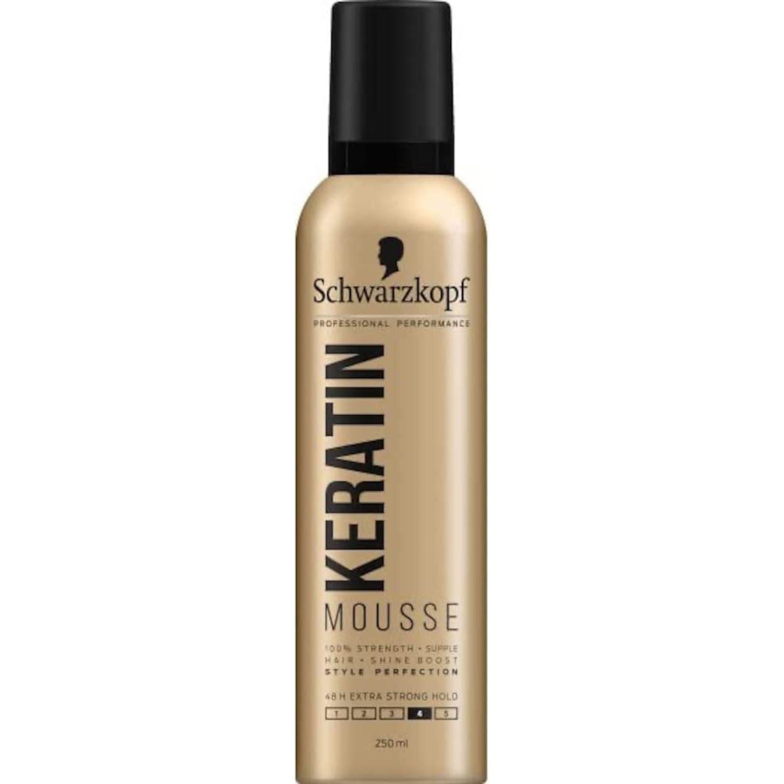 Schwarzkopf Styling Keratin Mousse with hair-identical, liquid keratin components strengthens hair and brightens natural shine. Schwarzkopf Styling Keratin Mousse with hair-identical, liquid keratin components strengthens hair and brightens natural shine.